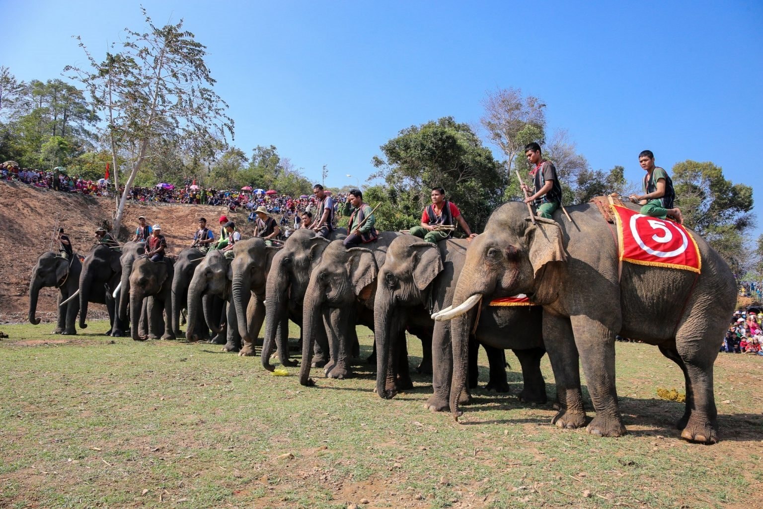 Tiếng cồng chiêng giục giã, tiếng tù và vang lên, đàn voi lao nhanh về phía trước trong tiếng hò reo cổ vũ. Ngoài chạy, voi còn tham gia thi bơi vượt sông, thi đá bóng, chở du khách tham quan… thể hiện sự linh hoạt, thông minh và gắn bó giữa người và voi.